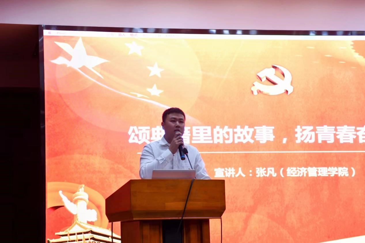 首先,“青春引路人”辅导员宣讲团成员、电器工程与信息工程学院辅导员成晨以《青春遇见新时代——从三件大事看十年伟大变革》为题,结合十年来,对党和人民事业具有重大现实意义和深远历史意义的三件大事及其本人带队乡村社会实践的经历,讲述了新时代伟大成就;其次,经济管理学院张凡以《颂典籍里的故事,扬青春奋进力量》为题结合三个革命故事,鼓励同学们要清醒的看到复兴之路依然荆棘密布,要具备迎难而上的勇气,为全面建设社会主义现代化国家贡献青春力量;最后,经济管理学院辅导员贾永胜以《奋进新征程,青春正当时》为题,从青年强则国家强和用好红色资源等维度,通过一个个鲜活事例讲述了党的二十大报告中对青年工作的要求,鼓励在场学生以青春之名,书写清澈至爱。