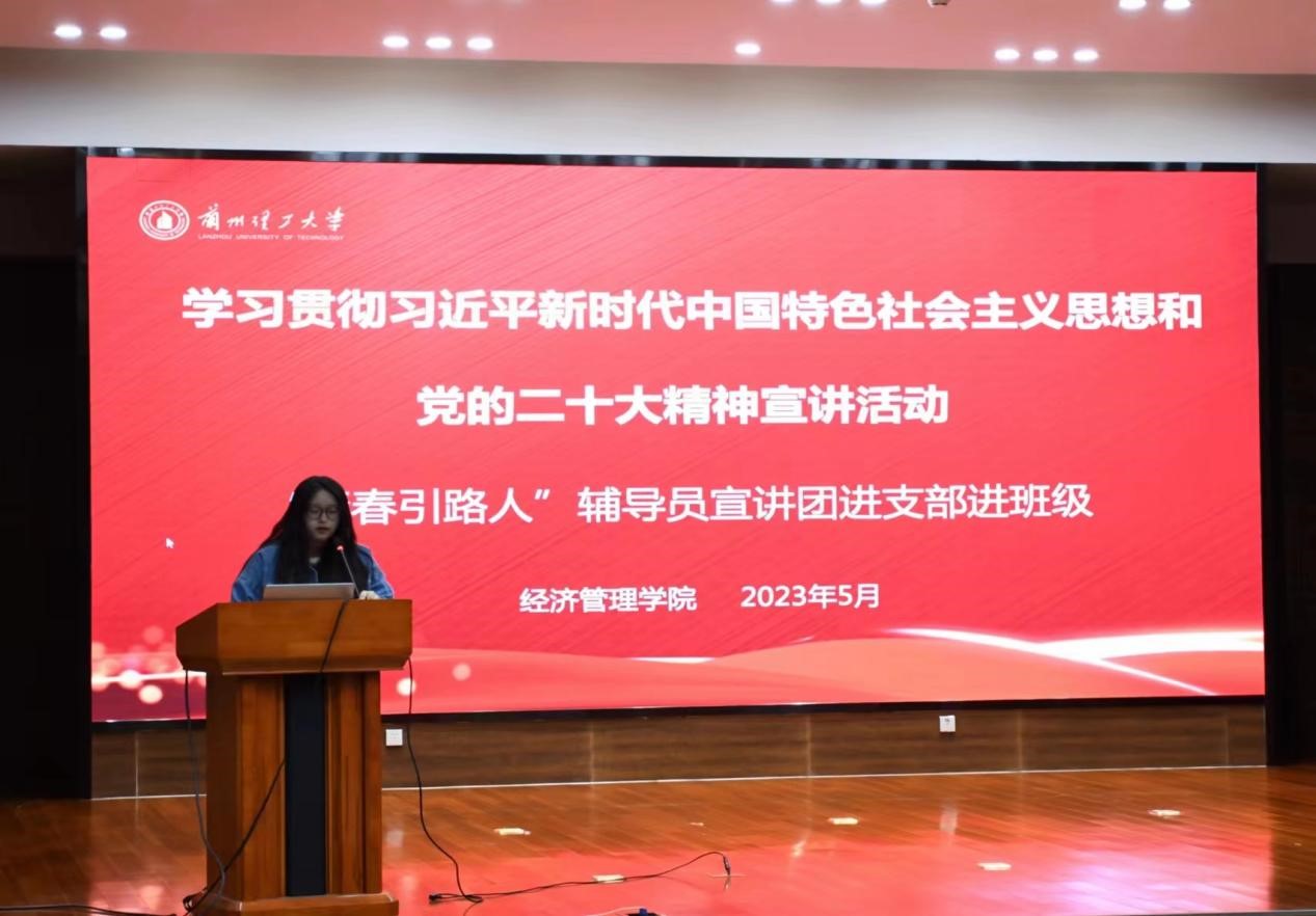 为深入贯彻落实习近平新时代中国特色社会主义思想主题教育及“三抓三促”行动,经济管理学院聚焦“抓学习促提升”,为不断掀起党的创新理论学习热潮,营造全院学生党团班一体化学习氛围,5月12日下午,经济管理学院邀请学校“青春引路人”辅导员宣讲团在彭家坪校区图书馆106报告厅开展学习贯彻习近平新时代中国特色社会主义思想主题教育和党的二十大精神理论宣讲活动。经济管理学院2022级工商管理1班、会计学1班全体学生,会计学本科生第一、第二党支部,国际经济与贸易本科生党支部党员、积极分子等200名同学参加,活动由学院辅导员甘露滢主持。