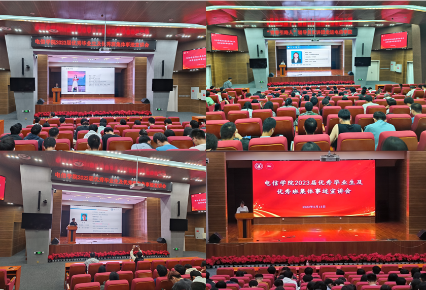 5月15日晚,电信学院在图书馆106报告厅举行“尚学好青年”2023届优秀毕业生及班集体先进事迹分享会。会议邀请电信学院曾猜、申敖凡,法学院优秀代表陈琦同学为电信学院全院学生分享学习经验。