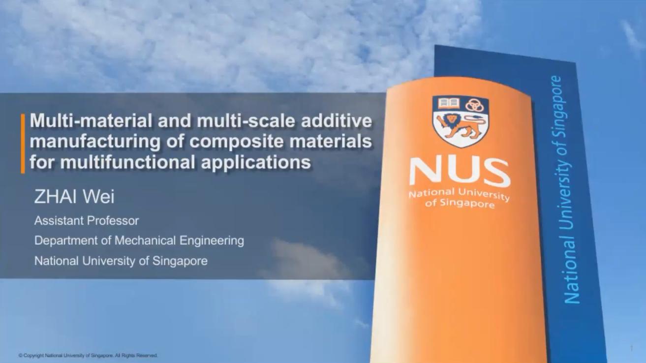 5月18日上午,应省部共建国家重点实验室邀请,新加坡国立大学Zhai Wei教授通过线上为我校师生作学术报告,报告题目为“Multi-material and multi-scale additive manufacturing of composite materials for multifunctional applications(多材料、多尺度增材制造复合材料及其多功能应用)”。报告会由省部共建国家重点实验室常务副主任石玗教授主持。重点实验室及材料学院师生50余人在线下会议室参会,同时,还有来自吉林大学沈平教授等多位师生线上同步参加了报告会。