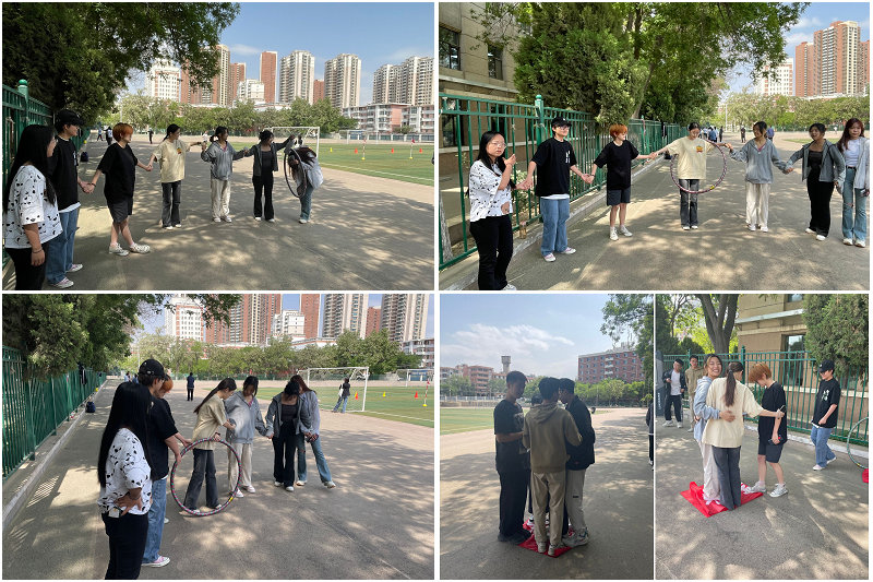 心理趣味运动会分为“一圈到底”“众志成城”两个部分。“一圈到底”中,所有同学手拉手围成一圈,通过灵活的扭动让呼啦圈穿过所有人的身体回到原位,“一圈到底”即挑战成功。“众志成城”游戏则是让各组成员全部站在报纸上,不可以踩踏报纸之外的地面,一次一次对折报纸,缩小报纸的面积,最后哪组所用报纸的面积最小则为胜出组。同学们在报纸面积不断减小的过程中也越来越互帮互助,彼此紧紧抱在一起。本次活动通过趣味游戏的方式,增加了同学们之间的沟通和了解,在欢声笑语中提高自身心理素质和自我关注认识,比赛以放松娱乐的形式,潜移默化地对同学们进行心理引导。