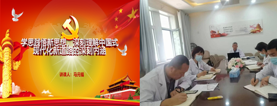 副院长马元福以“学思践悟新思想,深刻理解中国式现代化新道路的深刻内涵”为主题,引导党员干部深刻理解中国式现代化的丰富内涵和重大意义、深刻理解遵循中国式现代化建设的五大原则所具有的优势,号召党员干部深刻领悟“两个确立”的决定性意义,胸怀“国之大者”,团结奋斗、实干兴邦,争做中国式现代化新征程的见证者、开创者、建设者。在以习近平同志为核心的党中央坚强领导下,撸起袖子加油干,把党的二十大作出人民健康事业重大决策部署付诸行动、见之于成效。以实干担当开创校医院发展新局面,为学校国内特色高水平大学建设提供健康保障,为实现中华民族伟大复兴贡献自己的力量。(审核:曹立宏)