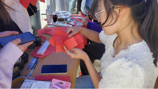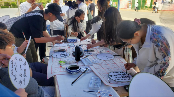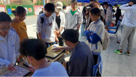 市集活动受到了广大同学的喜爱和欢迎,大家纷纷驻足观看并积极参与,几个热门的摊位前甚至排起了长队。在活动过程中,有的同学沉溺在国风圆扇的水墨世界中,制作着属于自己的夏日清凉;有的同学运筹帷幄,在棋盘之上斗智厮杀;有的同学信心满满,在红色知识问答中侃侃而谈;有的同学心灵手巧,在手工制作摊位前展示着自己的奇思妙想。