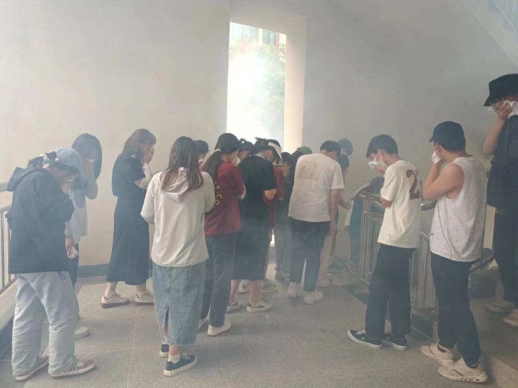 演练前学校消防专业人员对全体学生进行消防安全教育,重点介绍了各灭火器材的名称、用法,强调了有关火灾现场的应急处置方法及使用灭火器的注意事项,针对消防安全“三提示”、消防安全“一懂三会”等消防安全知识进行了专业讲解,指导全体学生如何疏散、防烟、灭火。在火灾疏散逃生演练时,参演学生在各楼层引导员的指引下,迅速列纵队在所在楼层集合,并在各楼层引导员引领下有秩疏散,同学们弯腰捂鼻,从就近的楼梯口安全有序的疏散到楼下指定避险位置,集合后相关负责人员对疏散的学生人数进行清点,确保全体参演学生安全撤离。最后进行了灭火实战演练,参演学生拿起灭火器按照灭火的步骤和方法进行了演练和操作,迅速将火堆燃起的浓烟大火扑灭,亲自体验了现场灭火的过程。