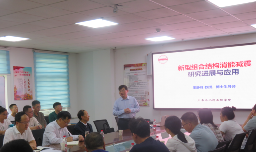 6月16日上午,王静峰教授在兰州理工大学土木工程学院会议室做了题为“新型组合结构消能减震研究进展与应用”的学术报告。他从我国组合结构技术发展讲起,介绍了组合结构消能减震和一些新型消能减震构件的理论分析、数值模拟和试验等相关研究,介绍了他的团队研究成果在中科院量子创新研究院、蚌埠体育中心等大型公共建筑中的应用。有关一些新型消能减震构件的理论分析给我校相关领域研究人员留下了深刻印象。报告结束后,我校土木工程学院青年教师和研究生积极提问,就组合结构消能减震技术的试验研究等具体问题做了深入探讨。