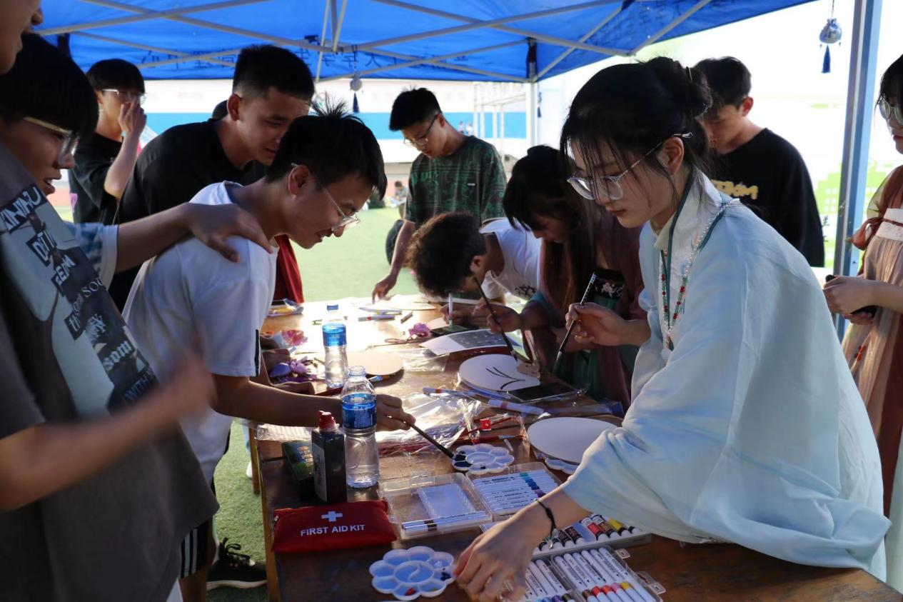 2023年6月27日傍晚,参与此次活动的师生齐聚西区田径场。活动分为两个环节,第一环节同学们通过“投进标壶”、创作专属纸扇,达成目标满足感以缓解自身内心焦虑。同时,以有奖竞猜的方式,让同学们更加了解中华优秀传统文化;第二个环节为夜跑活动,夜跑设置合理的运动路线,沿途设有补给站,各补给站配备医疗器具保障同学安全。此次活动引导同学们合理宣泄情绪,缓解压力,鼓励同学们了解并有意识地注重自我健康,学会正确解决生活困惑。最后为参与者准备荧光头饰、手环香囊、可画面扇和毛绒玩具等精美奖品。