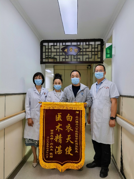 闫先生由衷的体会到中医药治疗的神奇效果,对张莉主任能很快治好他的头晕,非常感激,他说,这下办完事后可以安心的返回西安了。临行前送来一面“白衣天使,医术精湛”锦旗表达谢意。