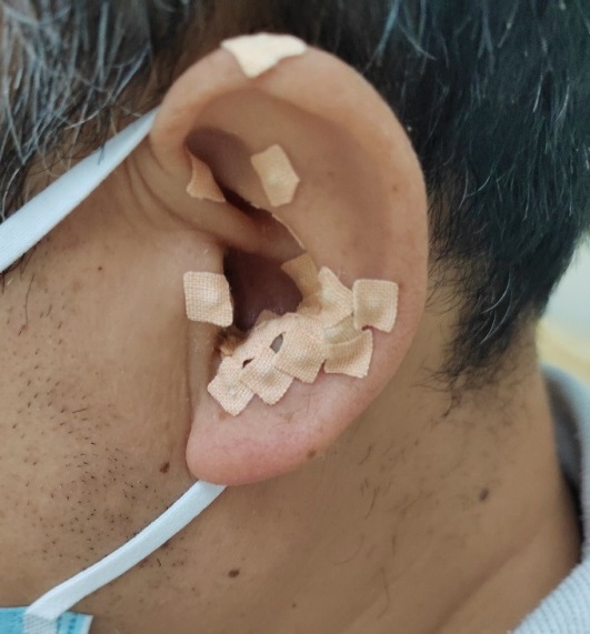 独自一人在陌生的城市出差,因病工作、生活受到严重影响,闫先生情绪十分焦躁。后经朋友介绍抱着试一试的态度在朋友搀扶下来到校医院,医院张莉主任诊察后,结合前期外院的检查资料,经中医四诊合参,详细分析患者病情后,认为患者主证并非寰枢关节脱位,诊断为“长新冠”,处方中药汤剂3日、耳穴治疗。服药第二天,眩晕即有减轻,3日后复诊,头晕明显减轻,可不用搀扶行走;继续辩证开方3日,眩晕基本消失,仅稍感午后疲乏。