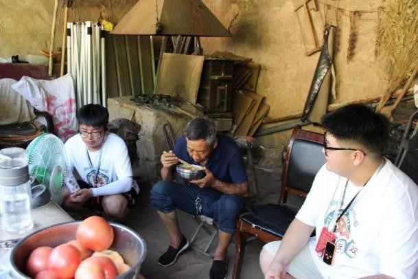图为实践成员与铁业社梁玉前老人访谈知青岁月