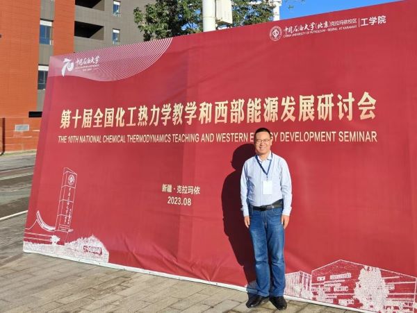 2023年8月15日至19日,由教育部高等学校化工类专业教学指导委员会主办、中国石油大学(北京)承办的“第十届全国化工热力学教学和西部能源发展研讨会”在中国石油大学(北京)克拉玛依校区召开。全国各地专家学者以及企业界同仁共计80余人参加了会议。石油化工学院化工工程系教师王东亮参加了研讨会。