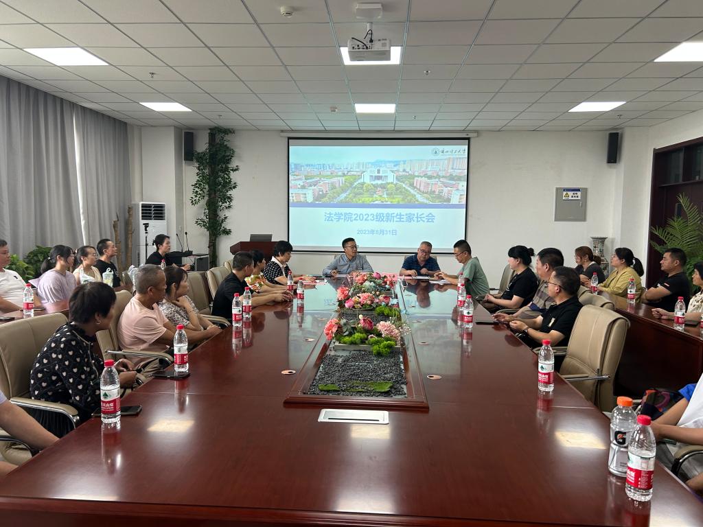 为增强学生家长对学校和学院的了解,帮助学生更快适应大学生活,建立家校联系,做好家校协同育人工作,法学院于8月31日下午3:00在学院会议室召开了2023级新生家长见面会。学院院长贾小龙、副院长白小平、研究生中心主任原新利,辅导员、新生班主任以及2023级部分新生家长参加会议,会议由学生工作办公室主任吕树鹏主持。