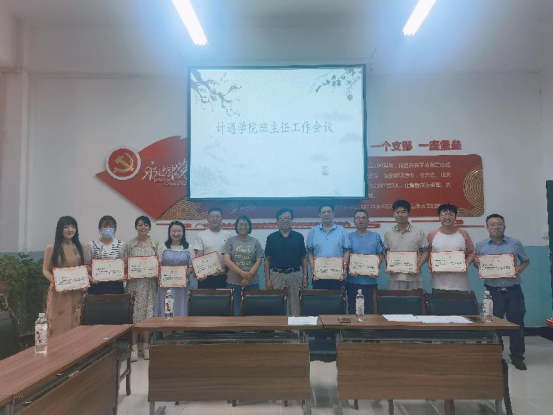 9月5日下午,计通学院在学院党员之家召开了新学期班主任工作会议,学院党委书记高国礼、副书记陈育苗以及各班班主任参加会议。
