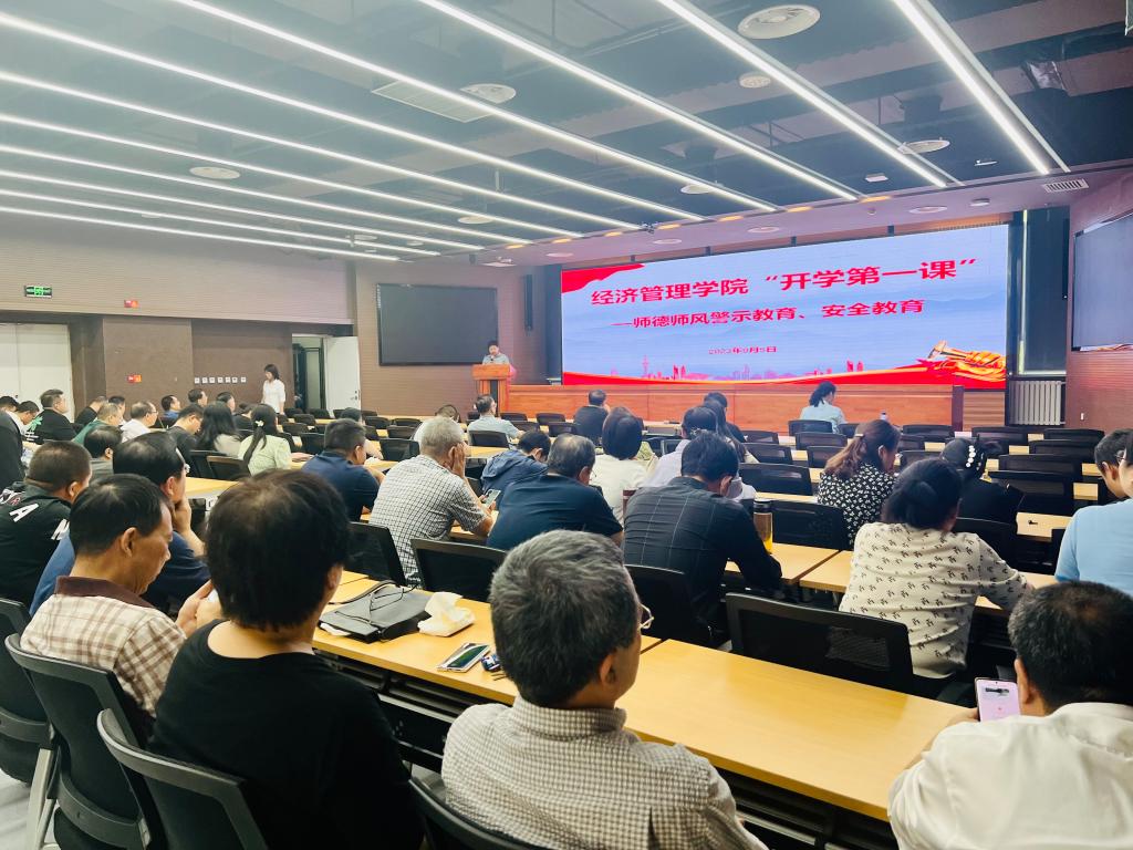 9月5日下午,经济管理学院召开师德师风警示教育暨校园安全工作会议,学院全体教职工参加,会议由学院党委书记穆龙主持。