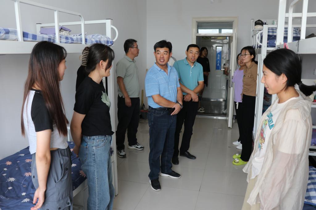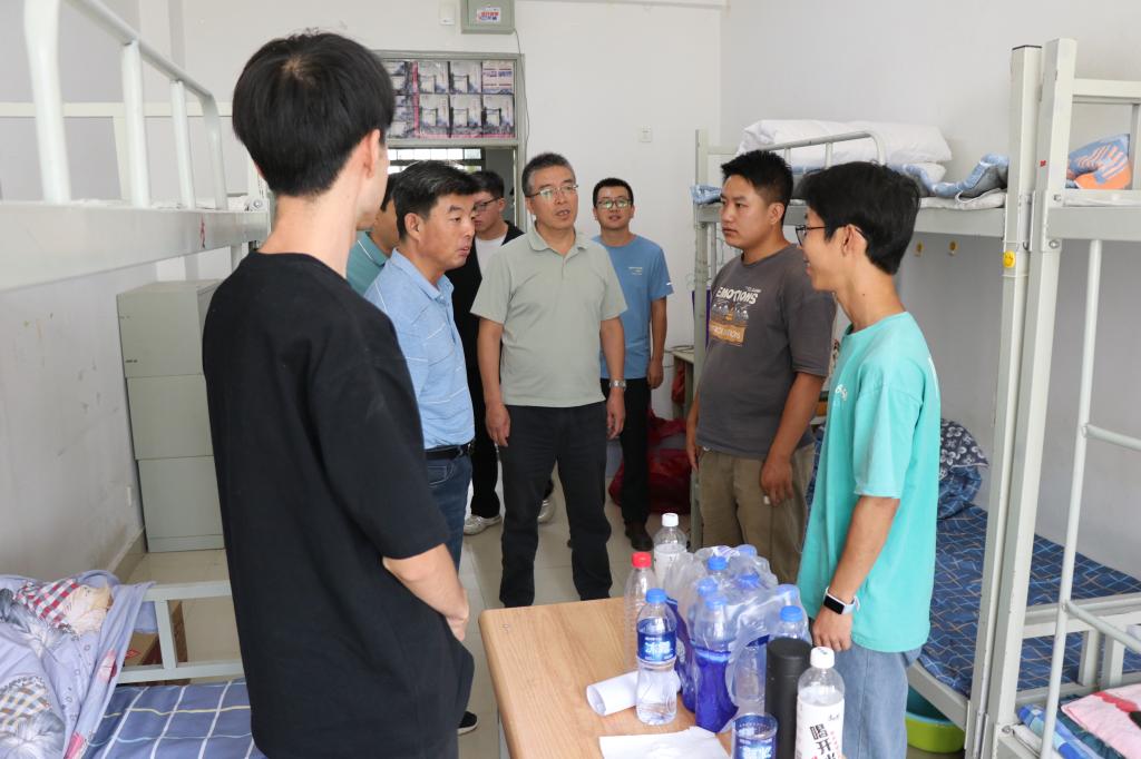 在新生公寓,学院领导与同学们亲切交流,了解同学们的学业情况和到校后的适应情况,检查了宿舍的基本设施、安全卫生、用水用电等情况。叮嘱同学们以饱满的精神状态尽快适应大学生活,努力提升学习能力以及综合素质。(撰稿人:马士伟;终审:王胜强)