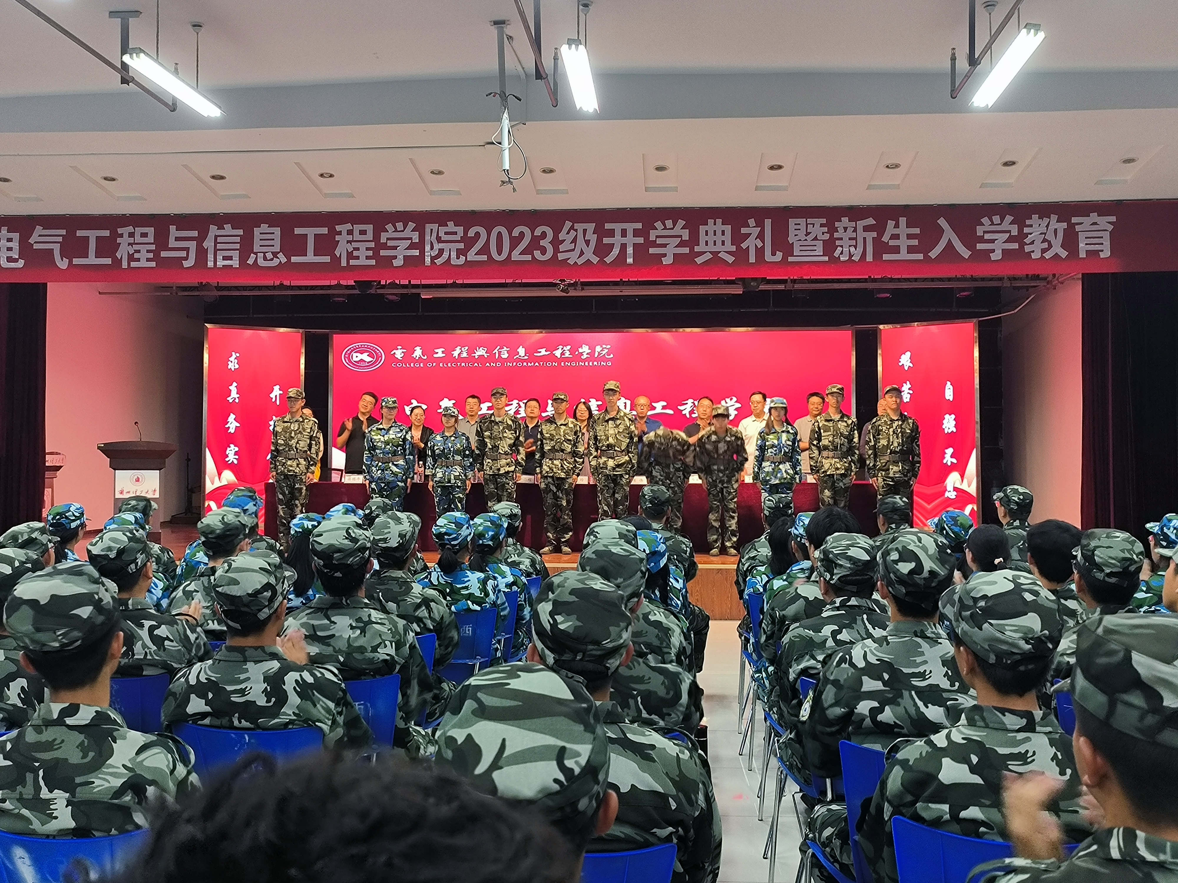 2023年9月11日晚,电信学院2023级新生开学典礼在彭家坪校区大学生活动中心举行,党委书记王玲、电信学院院长陈伟、副院长李二超、副院长冯宜伟、党委副书记刘炜、电工实验室主任丁守成、自动化系主任蒋栋年、电气工程系主任张宏亮,电子信息系主任黄玲、电工电子教学部副主任李建海出席了会议,全体辅导员老师及2023级588名新生参加了典礼。典礼由陈冲老师主持。