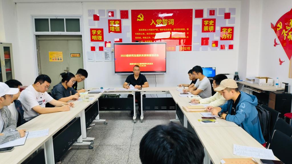 9月8日上午,能动学院召开2023级研究生党组织关系转入推进会,研究生各党支部书记、支部委员、新生班级班长、团支书、研究生辅导员参加了会议,会议由学院学生工作办公室主任、组织员赵继国主持。