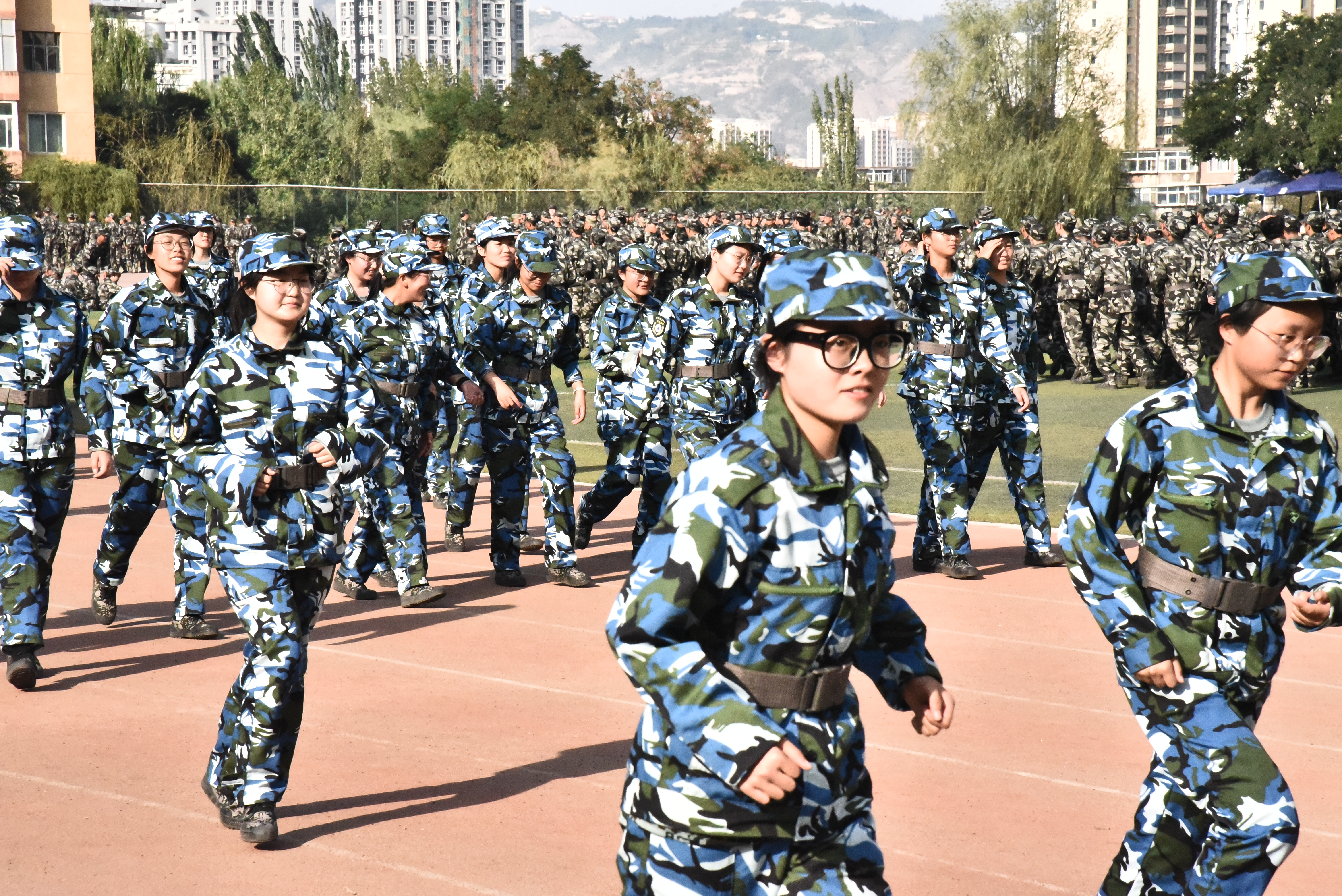 军训活动是培养大学生独立生活能力的重要环节,是爱国主义教育的组成部分。此次军训形式为男女生分开训练,根据男女同学所需练习的动作与体态的不同,其所训练的方式和动作也略有差异。尽管面临着骄阳似火和风沙的困扰,学生们展现了顽强的意志。大家始终保持了高昂的士气和饱满的热情,积极投入训练中。没有一个人掉队,没有一个人放弃。即使有些同学因病倒下,他们凭借着坚强的意志,稍有好转便继续参与训练;还有一些同学身体抱恙,但坚持以志愿者的角色为同学们做好后勤服务保障。教官们耐心地指导,学生们认真聆听并积极学习。在军训队列比赛中,同学们整齐划一,精神饱满,步伐矫健,口令准确,声音响亮。