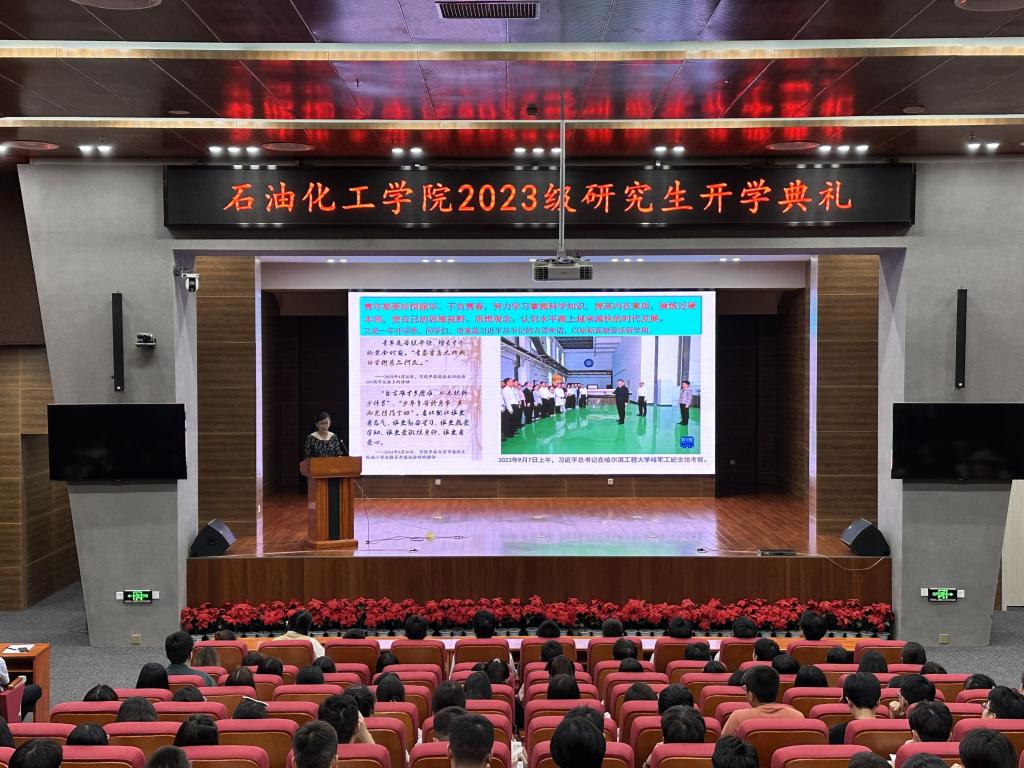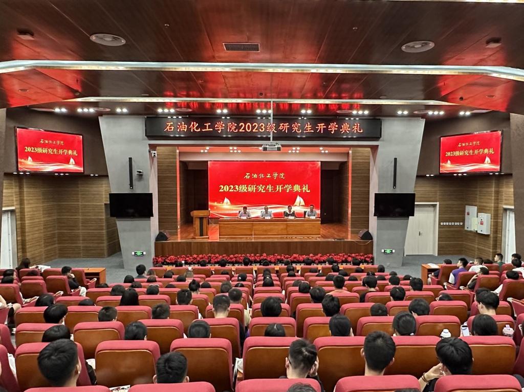 2023年9月13日,石油化工学院2023级研究生开学典礼在彭家坪校区问鼎堂举行,学院党委书记任鹏、党委副书记张飞龙、副院长赵霞、主管研究生工作辅导员戴文韬、陈伯友及2023级全体研究生参加典礼。