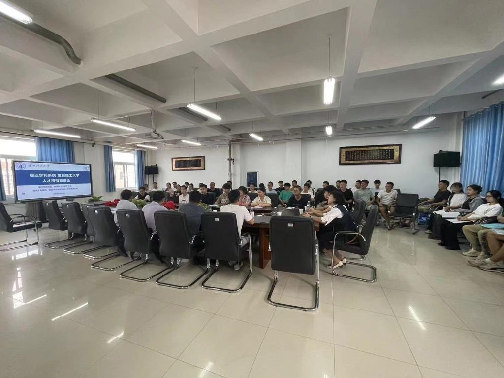 首先,学院2013届优秀校友、宿迁市水利局淮西水利工程管理处副主任、宿迁招才引智工作局兰州站站长万吉祥详细介绍了宿迁市的人文环境和引才政策。接着,宿迁市水务勘测设计研究院有限公司办公室主任张以明详细介绍了岗位需求、招聘流程、职业发展及待遇福利等相关情况,并就毕业生关注的岗位主要工作职责、工作时长、专业培训等问题进行了详细解答。最后,宿迁水务集团江苏润城排水有限公司胡志科长向各位应聘毕业生介绍了公司的基本情况、发展历程及运行机制,用自己的职业生涯之路为在校学子指引职业发展方向。学院老师寄语毕业生要自信与从容地面对人生的每一次选择,明确自己的就业方向,抓住机遇,找到心仪的职业之路。