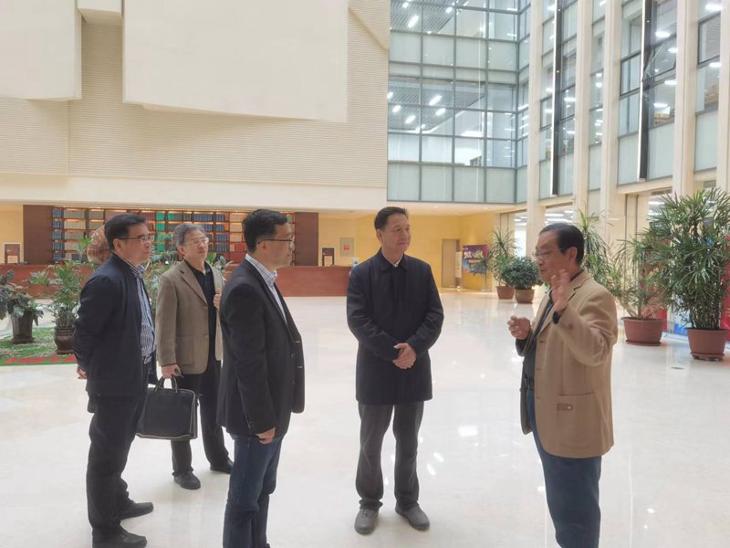 朱廷珺一行参观了“问鼎堂”图书馆借阅区、阅览区、研讨区及电子阅览区等馆舍空间,详细了解了图书馆的馆藏及空间布局、功能区规划、文献资源建设情况、信息化系统建设和运行情况。