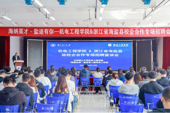 党渭平代表机电工程学院衷心感谢海盐县委组织部、人社局以及来校招聘的企业能把解决高校毕业生关心的“关键小事”作为“头等大事”,提供“精准化”的就业配套服务,吸引我校毕业生到海盐就业。希望在海盐县相关政府部门、学校就业中心、海盐相关企业的大力支持下,院、政、企三方能够以此次深度合作为契机,更进一步拓展合作内容。学院也会在学校指导下,竭力以三方共赢为原则,校政企之间有效利用优势资源,资源共享、互惠互利、共同发展,共同培养适应新时代高素质应用型人才。学院也将积极推荐优秀毕业生到海盐县就业创业。