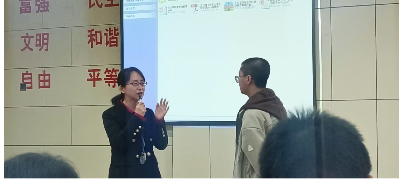 吴长和王永胜从土木工程专业、智能建造专业的历史沿革、学科发展、师资队伍、教学科研成果、人才培养模式、培养方案、未来发展等方面作了详细的介绍。让同学们了解了专业的基本发展情况、培养目标、毕业要求、课程体系、学历提升、就业前景等。同学们表示对专业有了全面的认识,增强了专业认同感。