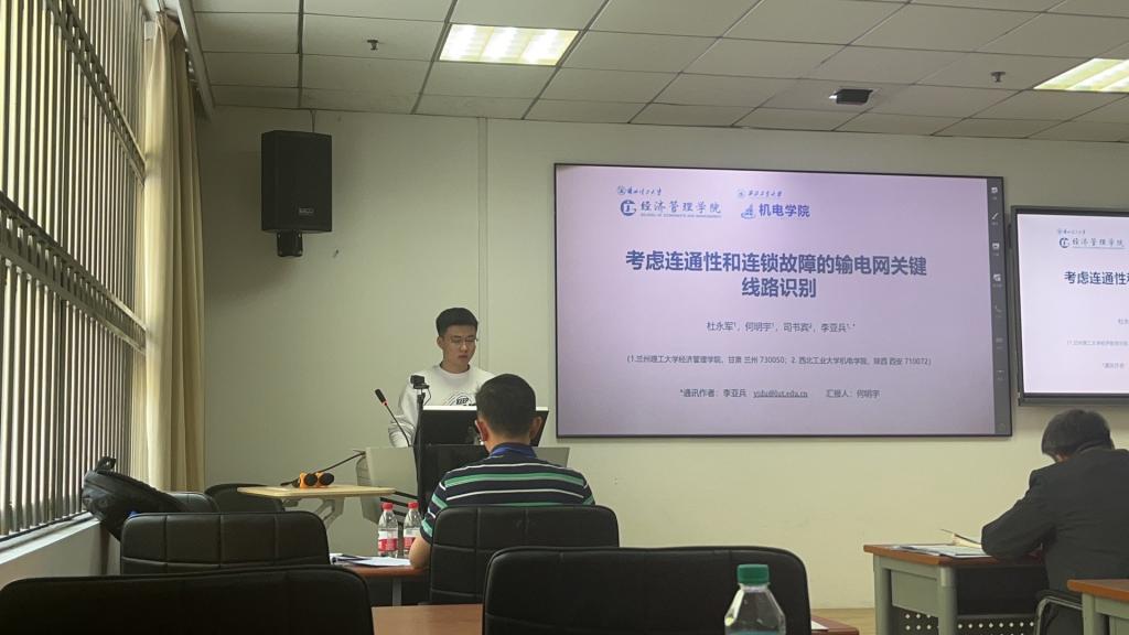 22级管理科学与工程专业硕士生何明宇在“统筹学与安全管理”分会场作了题为“考虑连通性和连锁故障的输电网关键线路识别”的学术汇报,该研究聚焦输电网络大停电事故,考虑输电网络拓扑结构的连通性和连锁故障的发展机理,给出一种识别关键线路的科学方法。