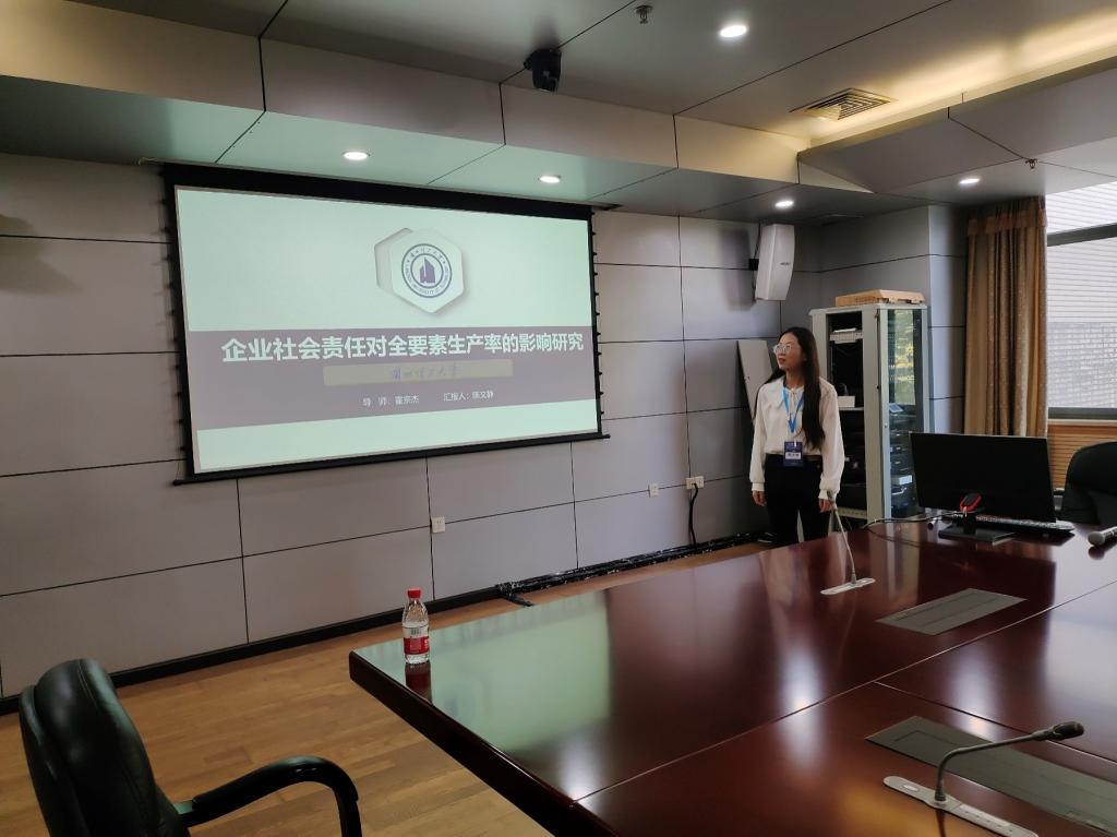 10月15日上午,21级会计硕士(MPACC)陈文静在“企业经营管理”分会场作了题为“企业社会责任对全要素生产率的影响研究”的学术汇报,该研究聚焦生产要素的质量和配置效率,考虑了不同行业竞争度和不同社会信任度下,企业社会责任对全要素生产率的影响。