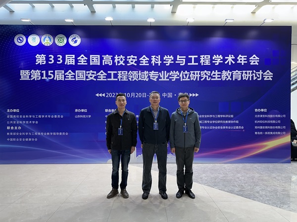 2023年10月20-22日,第三十三届全国高校安全科学与工程学术年会暨第十五届全国安全工程领域专业学位研究生教育研讨会在山东青岛举办,会议由公共安全科学技术学会、全国高校安全科学与工程学术年会委员会主办,教育部安全科学与工程类专业教学指导委员会、中国职业安全健康协会联合主办,山东科技大学承办,中国石油大学(华东)、青岛科技大学、青岛理工大学、哈尔滨理工大学及石家庄铁道大学等学校联合承办,全国100余所高校和相关单位的1000多位专家、学者及学生代表参加了大会。石油化工学院副院长梁瑞、安全工程系主任李珍宝等3人参加会议。