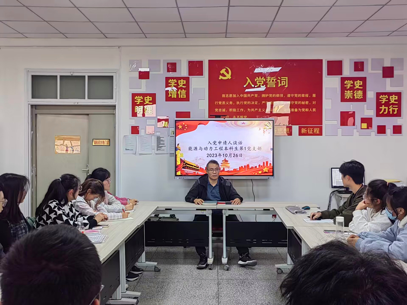会上,同学们就个人基本情况、对党的认识、入党动机和入校以来学习生活等方面情况逐一作了分享。赵继国就发展党员流程、党员权利义务、党员作用发挥、个人成长发展、七号舍友计划、能源先锋计划等内容与大家作了具体交流,并审查了同学们向党支部递交的入党申请书。赵继国勉励同学们,一是要坚定理想信念,加强党的基本知识和习近平总书记给青年寄语的学习,坚定不移听党话、跟党走;二是要厚植家国情怀,心怀感恩,积极践行社会主义核心价值观,弘扬中华传统美德和中华优秀传统文化;三是要踔厉奋发,明确目标,在大学这个赛道上跑出属于自己的最好成绩。(撰稿:赵继国,初审:赵炜;终审:章小成)