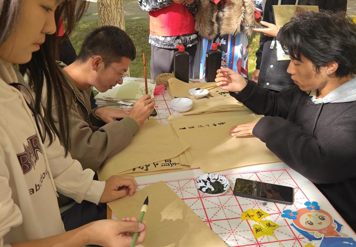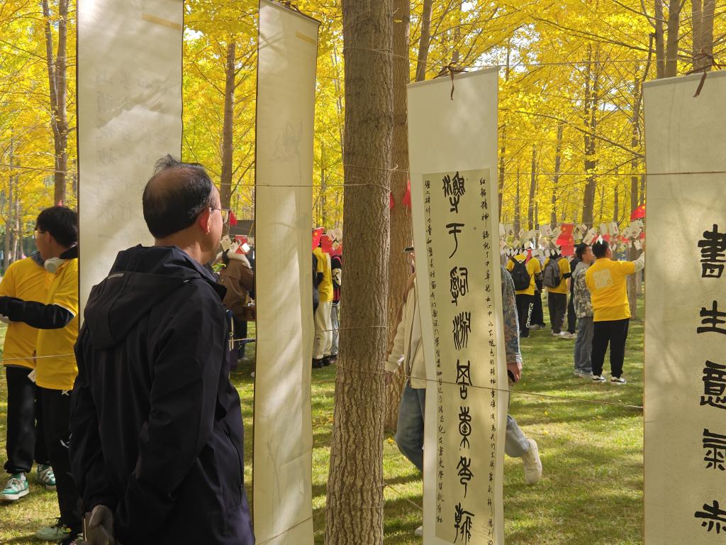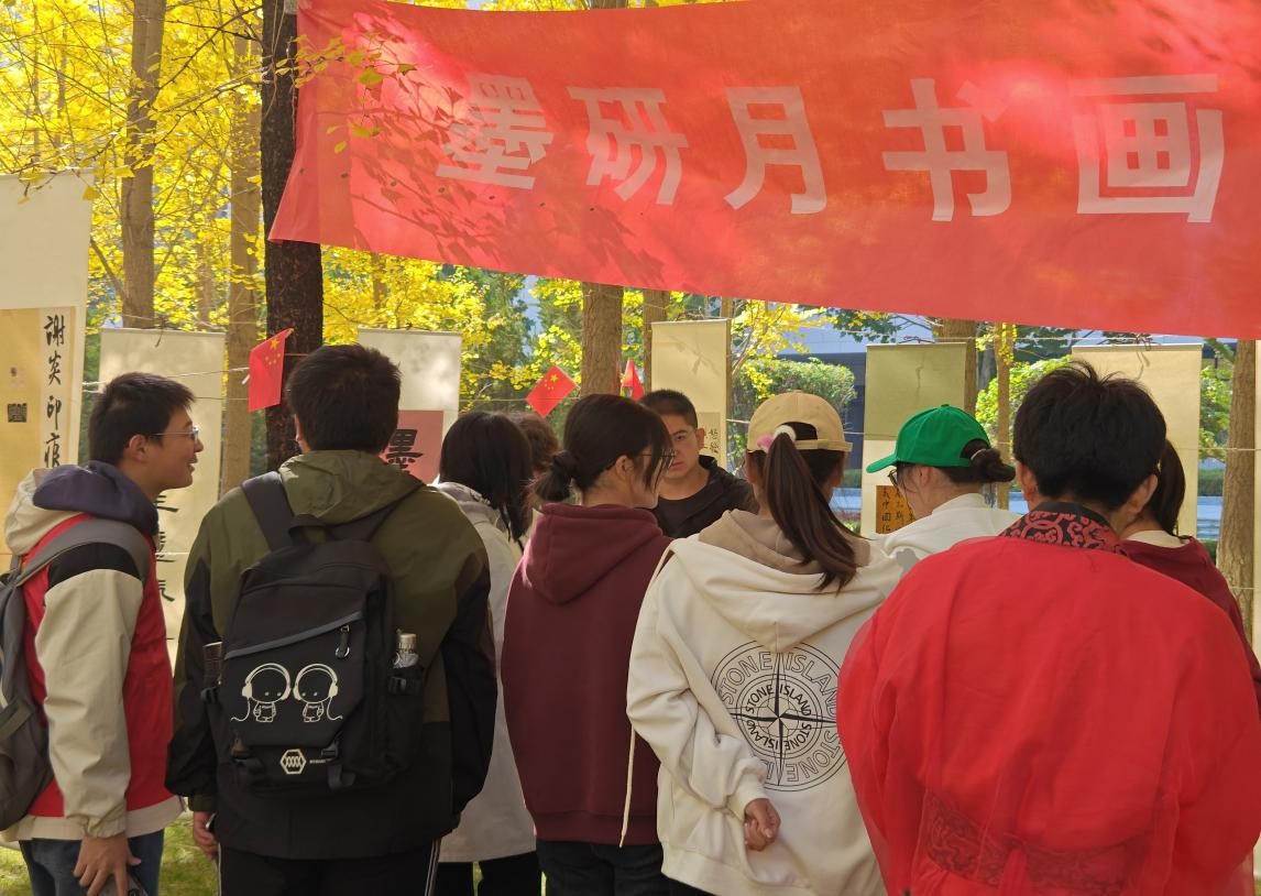 秋季的兰州理工大学银杏林色彩斑斓,美不胜收。为帮助2023级新生更快地融入新环境、新生活,引导新生进一步坚定理想信念,尽快适应大学生活,墨研月书画协会于10月28日在彭家坪校区银杏林举办了“墨印校园,逐梦兰理”书画作品展。