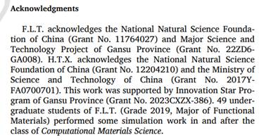 功能材料专业2019级49名同学在2022年秋季学期学习了《计算材料学》课程,课堂和课下利用第一性原理方法建立了Li2S、Li2S2等多硫化锂小分子的原子结构模型,并采用Arguslab或Castep等软件优化了这些模型,并初步计算了这些小分子的LUMO、HOMO分子轨道及周围的电场分布。此外,还建立了三维阴极材料物质结构,如FeS2、Fe0.875Co0.125P0.125S1.875及Fe0.875Co0.125O0.125S1.875等。并采用Castep计算了这些物质的能带、态密度等基础物理性能。这些计算既训练了本科生的计算材料学技能,又为实验中材料的选择提供了理论指导。课程结束后,对计算结果进行整理、分析,撰写成文《Tuning ofd-pband centers with M-A (M = Co, Ni, Cu; A = N, P, O, Se) co-doped FeS2for enhanced Li-S redox chemistry》,发表在国际知名能源期刊《Journal of Energy Storage》(影响因子:9.4)。该项工作指出:Fe0.875Co0.125P0.125S1.875作为硫阴极主体在促进Li-S氧化还原化学方面具有潜在的应用价值。这一工作加深了对共掺杂策略的理解,为设计和开发硫阴极主体来改善锂硫电池中Li-S氧化还原化学性能提供了理论指导。《计算材料学》是汤富领教授主讲的一门项目式教学课程,在专业课程学习中融入科学研究,提升课程的实践性和趣味性,增强同学们的实际操作能力、创新能力、自我组织和协调能力,增加了同学们的课程获得感。(撰稿:汤富领,终审:徐仰涛)