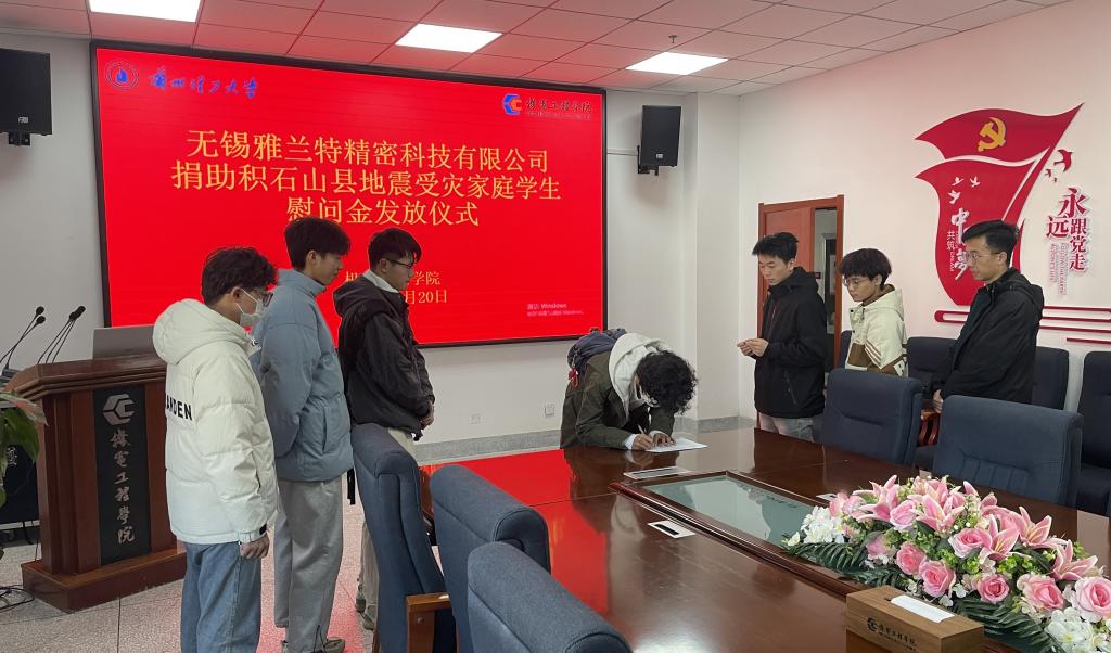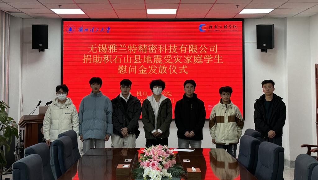 灾难无情,人间有爱。为帮助受灾地区学生家庭度过难关,12月20日,无锡雅兰特精密科技有限公司为机电工程学院因积石山县地震导致家庭经济突发困难的学生捐赠爱心助学慰问金。
