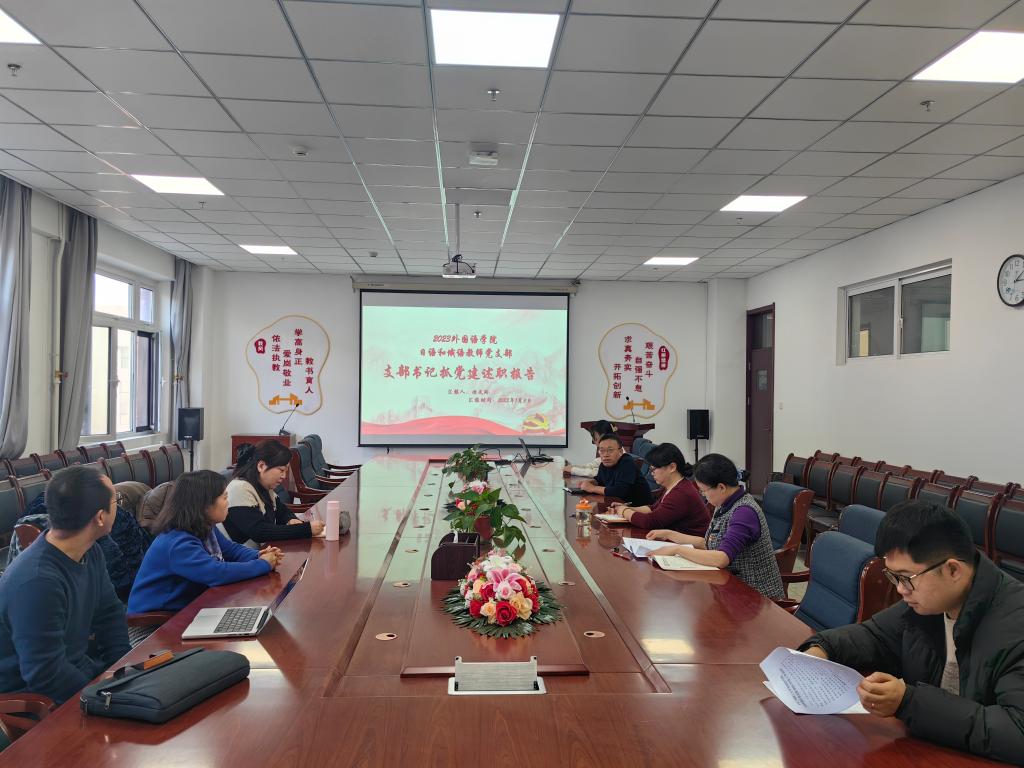 1月3日下午,外国语学院党委在文理楼417室召开2023年度党支部书记抓党建工作述职评议考核会议,学院党委领导班子成员,教师党支部与学生党支部书记参加了会议。会议由学院党委副书记潘永锋主持。