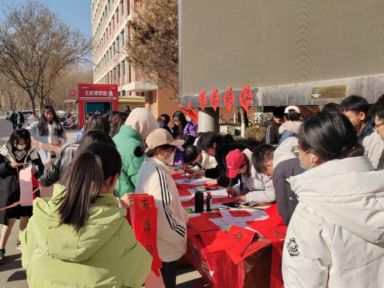 活动当天,社团成员还在现场与同学们进行互动,根据同学们提供的内容现场撰写,活动开展时长5个小时,共送出350幅春联,此次活动吸引了众多师生的参与,大家纷纷驻足观看领春联,同学们表示收到了这份特殊的祝福,并对社团成员的辛勤付出表示感谢。