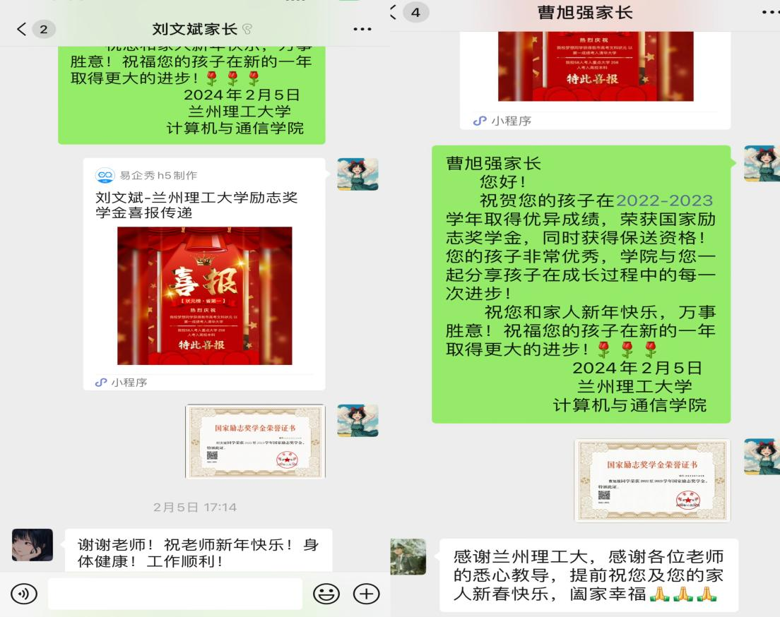 (2020级学生刘文斌家长和学生曹旭强家长留言)