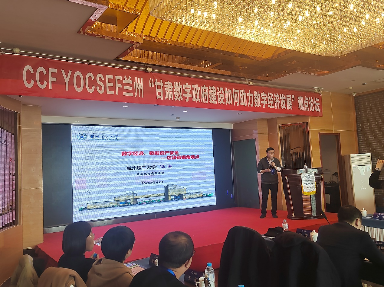 3月2日下午,由计通学院承办的CCF YOCSEF“甘肃数字政府建设如何助力数字经济发展”观点论坛在白云宾馆成功举办。本次论坛围绕数字政府建设中公共数据流通的挑战、数据共享过程中数据要素的安全、数据要素在甘肃数字经济发展的作用等方面进行讨论。论坛邀请到了国家级青年人才项目入选者、西安交通大学赵玺教授、杭州数梦工厂有限公司甘肃公司总经理李仙龙、计算机与通信学院院长冯涛教授作学术报告。来自全国高校和企业的50余名学者参加了论坛,并进行思辨讨论。
