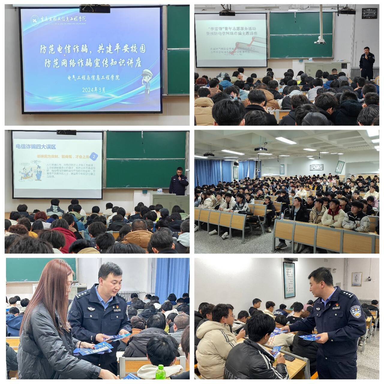 为提高大学生对电信诈骗的防范意识,增强学生的自我保护能力,构筑全民防范诈骗的“铜墙铁壁”,共建平安校园,3月4日晚,在第61个“学雷锋纪念日”来临之际,电信学院联合七里河公安分局团委、彭家坪派出所在集贤楼208教室开展“学雷锋”青年志愿服务活动暨预防电信网络诈骗主题讲座。电信学院辅导员老师和2023级同学参加了此次活动。