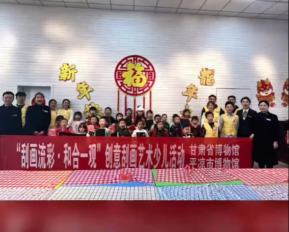 3月5日,设计学院青年志愿者赴甘肃省博物馆协助省博、平凉市博物馆举办“到画流彩·和合一现”创意刮画艺术少儿活动。
