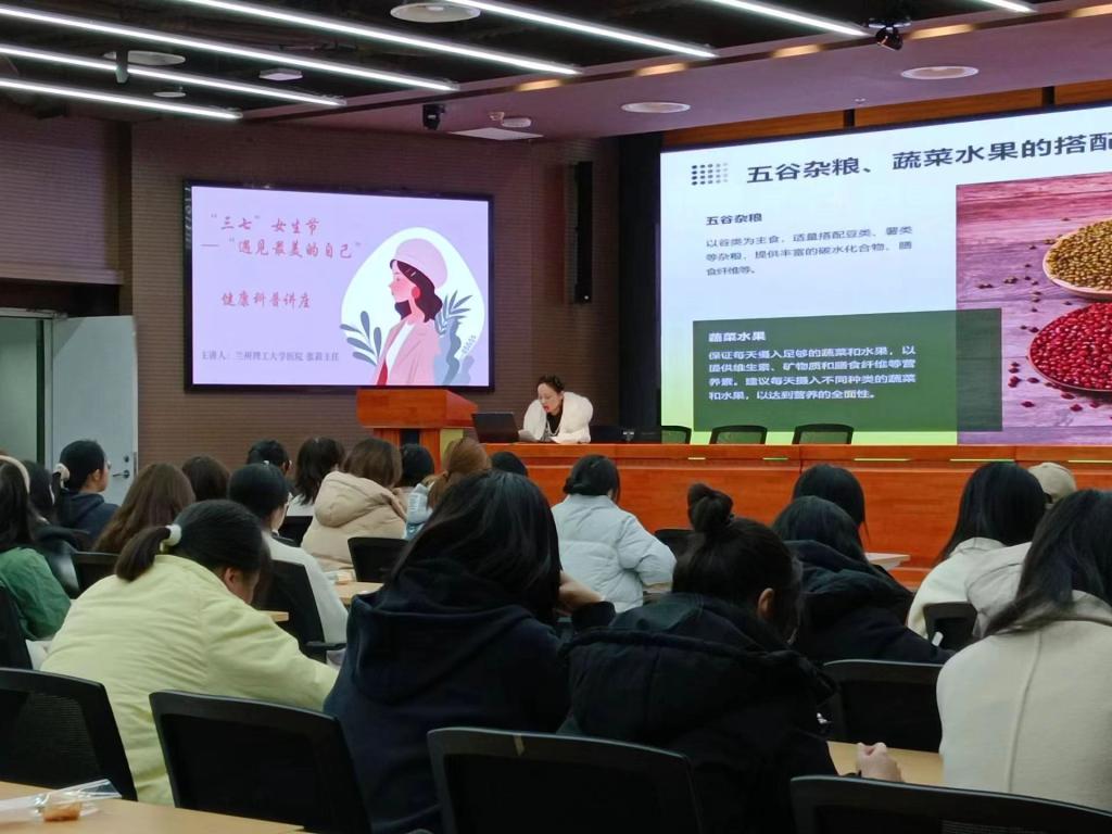 张莉医生以其丰富的专业知识,多年的临床经验,通过图文并茂的方式、通俗易懂的语言,围绕女性健康主题,结合实际案例,深入浅出的为在场女生讲解女性防衰、卫生保健、心理健康、四时调养等知识,引导女生了解自我、关注自身发展,自觉养成科学文明健康的生活方式。讲座最后,学院为每位女生送上了鲜花和祝福。