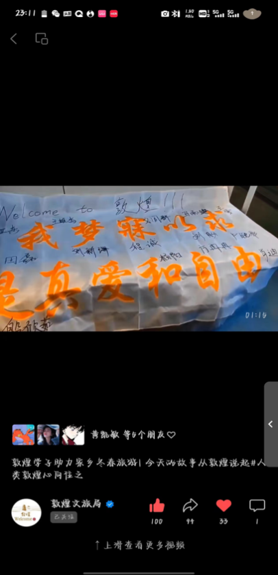 敦煌学子马雨婕积极组队,在家乡开展“返家乡”社会实践,她通过敦煌文旅宣传公益宣传活动,制作宣传视频,带动敦煌本地大学生、带动更多年轻群体了解敦煌,走进敦煌,爱上敦煌,更加积极主动宣传敦煌。以青春之我,奋斗之我投身于家乡的发展建设,为家乡贡献一份属于青年人的力量!