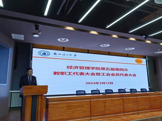 2024年3月12日下午,经济管理学院第五届第四次教职工代表大会暨工会会员代表大会在彭家坪校区问鼎堂109召开,学院全体教职工代表齐聚一堂,共商学院发展大计。会议由学院党委书记穆龙主持。