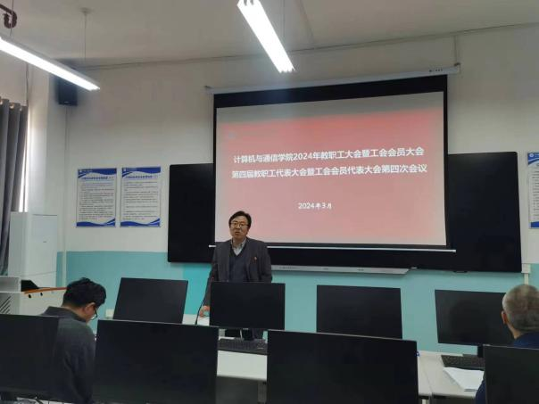 为深入学习贯彻习近平新时代中国特色社会主义思想,一体化推进主题教育学习和“三抓三促”行动走深走实,全面提升学院内涵发展、高效发展,持续提升教职员工对学院工作的满意度。2024年3月19日下午计算机与通信学院召开了第四届教职工代表大会暨工会会员代表大会第四次会议。计算机与通信学院全体教职工参加了会议,39名教师代表参与了小组讨论和会议的表决工作,会议由学院党委书记高国礼主持。