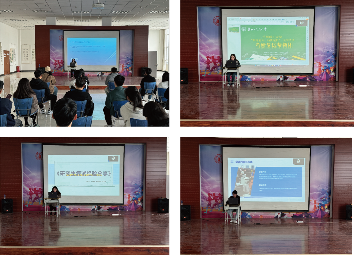 活动现场,结合自身考研复试成功经历,研究生学长学姐们从复试概况、复试准备、面试技巧及注意事项四个方面为即将参加复试的同学们进行了详细的讲解,同时开展了“面对面”指导交流和“一对一”答疑解惑,活动吸引了百余名同学前来现场学习。