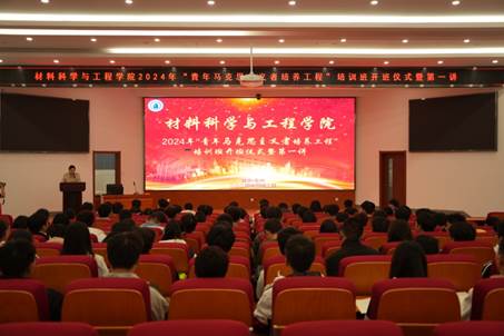 为深入学习贯彻习近平新时代中国特色社会主义思想,学习习近平关于青年工作的重要论述精神。落实对广大青年学生的思想政治教育,培养广大青年成为坚定的马克思主义者,引导青年做到“两个维护”,坚持“两个确立”,增强“四个意识”,坚定“四个自信”。4月2日下午,材料学院在兰工坪校区图书馆二楼报告厅举办2024年“青马工程”培训班开班仪式暨第一讲,开班仪式由学院团委书记刘舒婕主持,2024全体“青马工程”学员参加。