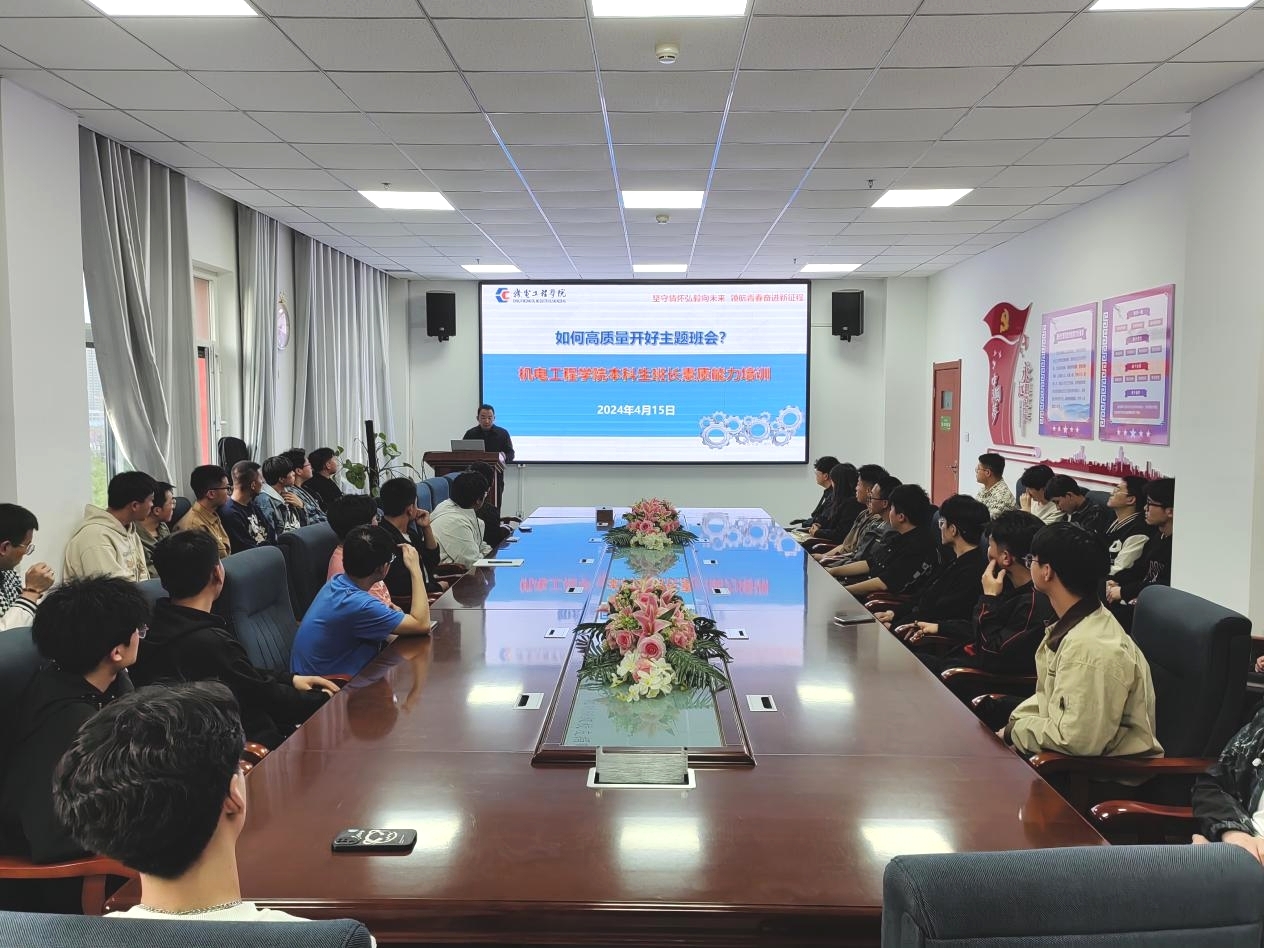为切实增强对学生干部的教育管理,充分发挥学生干部在班级建设中的重要作用。4月15日,机电工程学院分别以“如何开展好主题班会”、“如何开展好主题团日活动”为主题对全体本科生班长、团支部书记开展素质能力提升专题培训,全体本科生班长、团支书共88人参加了本次培训讲座。