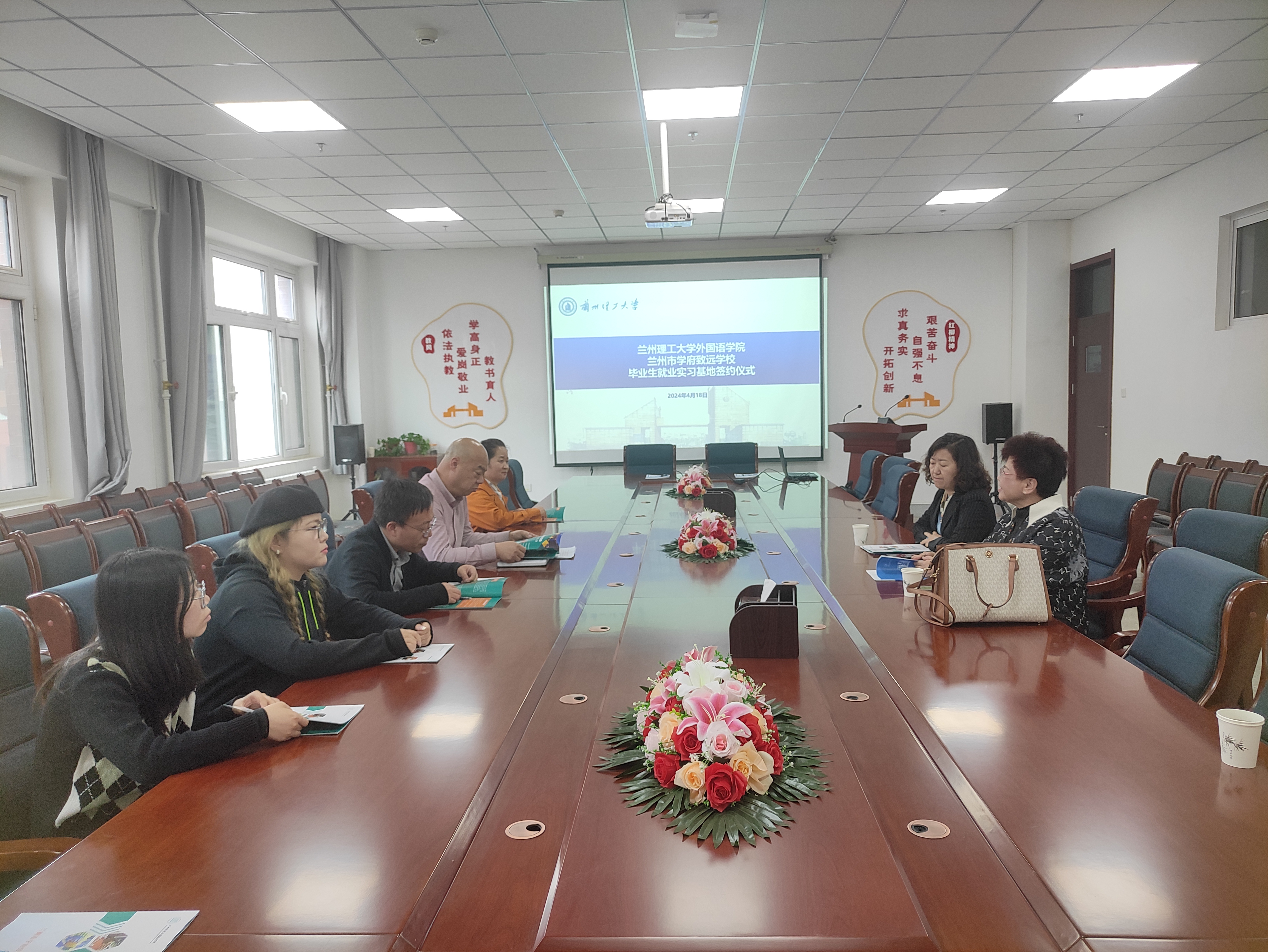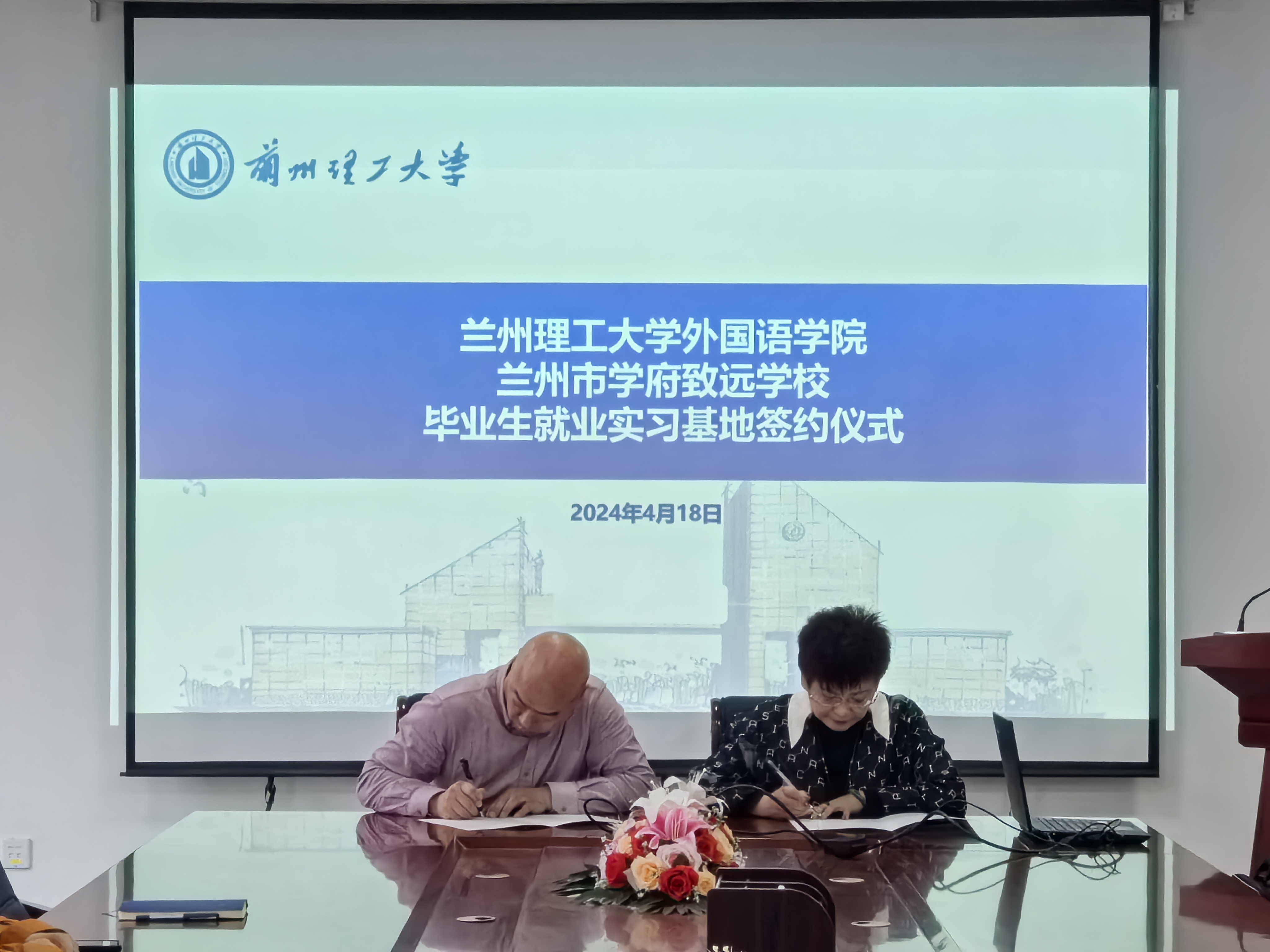 4月18日下午,外国语学院在学院会议室与兰州市学府致远学校举行就业基地签约仪式。学院党委书记高林学、党委副书记潘永锋、就业辅导员和相关专业教师参加活动。