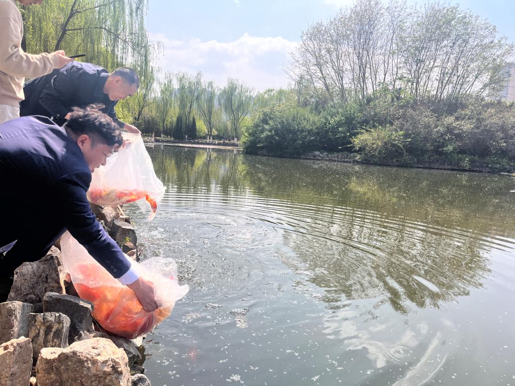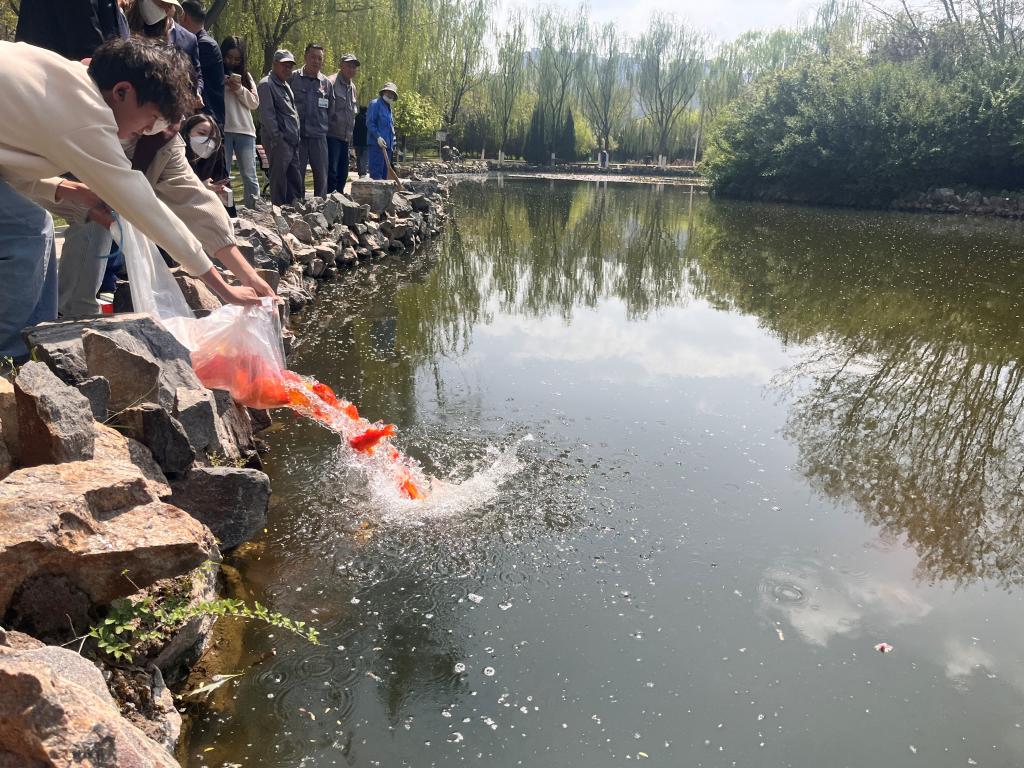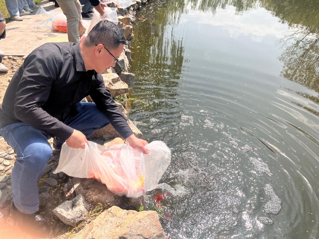 本次放养的锦鲤鱼不仅美化了校园环境,还成为师生们课余时光的美好陪伴,倡议全校师生文明安全观赏,共同保护生态环境,努力打造美丽校园、生态校园。(撰稿:陈英 初审:马威 终审:陈永泰)