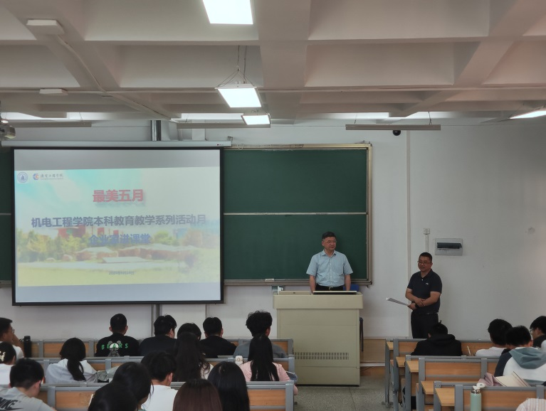 5月14日,机电工程学院本科教育教学系列活动月之企业家进课堂活动在彭家坪校区集贤楼404教室进行。