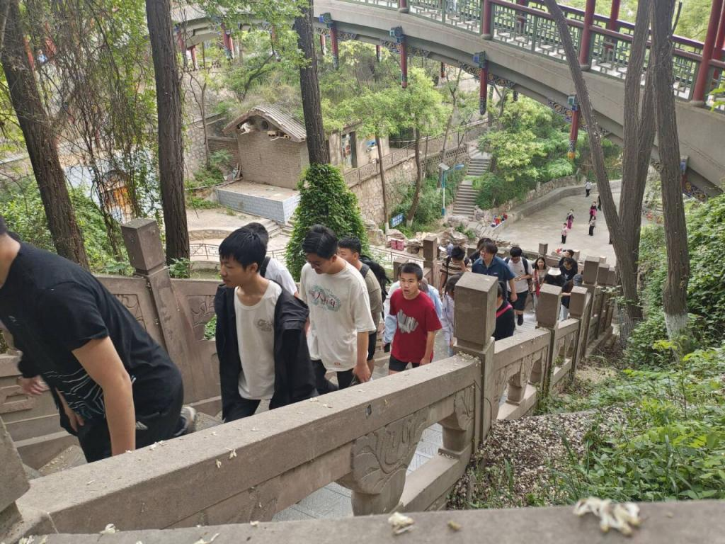 随后全体同学在班主任老师的带领下开始沿登山阶梯爬山,虽然路途艰辛,挑战性强,但是班级同学们相互帮助鼓励,凭着坚强的意志与决心,最终全部登顶。随后老师与同学们又开展了益智的集体游戏活动,在欢声笑语中成功促进班级同学与老师的交流,增进了相互之间的感情。